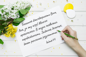 Скажу так, увидела в Инстаграм рекламу, почитала, подумала… была не совсем в ужасающем состоянии, но в запутанном, понимая что есть "не так"... надо - "как то по другому», а что где и как не понимала. Практически с первых заданий стало появляться прояснение… в ситуации, в себе и в целом в своей жизни. Многие вещи были у меня проработаны до этого, однако я все равно повторно их прорабатывала, без филонства… К концу игры появилась уже ясность в том, чего хочу, чего нет, чему в моей жизни место есть, чему нет, проработала себя... поняла что с сопротивлением выполняются те задания в которых и есть загвоздка проблемы и там надо действительно потрудиться, и не один раз, но я справилась! Естественно, еще есть над чем работать! Однако уже сейчас вокруг меня все меняется и это даже замечают окружающие, сама сделала очень серьезный шаг, поставила свои границы, которые были в плачевном состоянии... начала ценить себя, свою жизнь. Надеюсь и верю, что смогу и дальше не только удержать это состояние, но и продвинуть и закрепить (поэтому конечно "птицы" мне интересны...! Тонкий намек) А теперь, Анечка , я действительно , искренне Вам благодарна, что Вы свои знания несете в Мир и помогаете (не буду за всех, скажу за себя, для таких как я), запутавшихся и потерявших на время почву под ногами! Это огромный труд, который воздастся обязательно!! И столько судеб которые изменятся благодаря Вам не могут не быть подарком!!!❤
